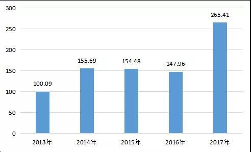 图3 2013~2017年电视剧制作投资额(单位:亿元)