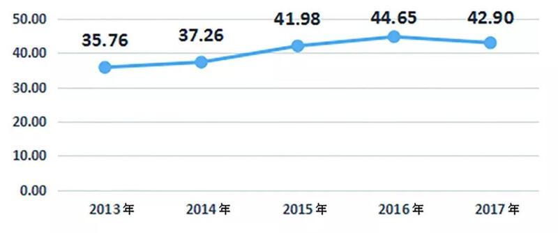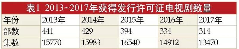 图1 2013~2017年获得发行许可证电视剧单部集数