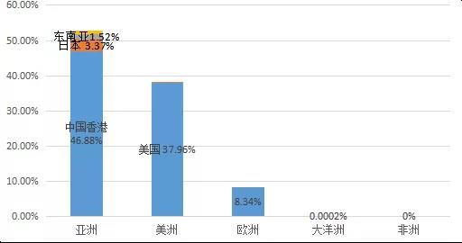 2017年,我国进口亚洲电视剧114部、1616集,分别占进口总量的37.75%和59.83%,电视剧进口额4.37亿元,占进口总额53.69%;美洲和欧洲位居第二、第三位,电视剧进口额分别为3.09亿元和0.68亿元,占进口总额的37.97%、8.34%(见图11)。