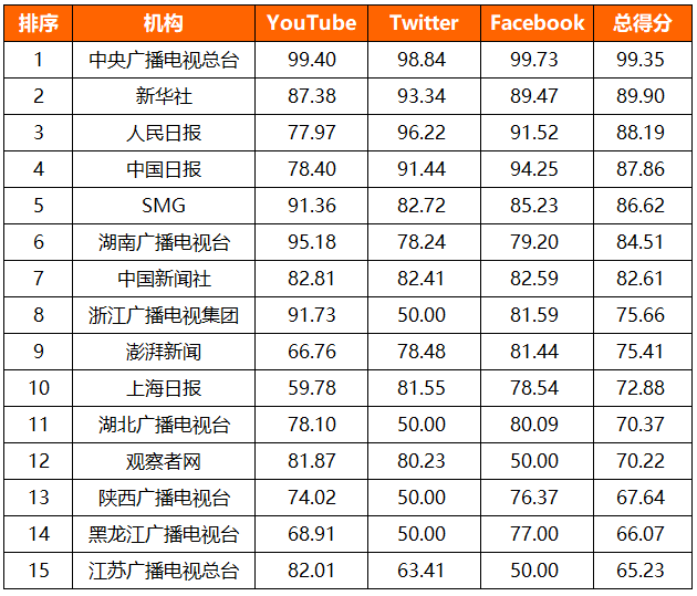 图注:2022年国内主流媒体机构海外传播力榜单TOP15