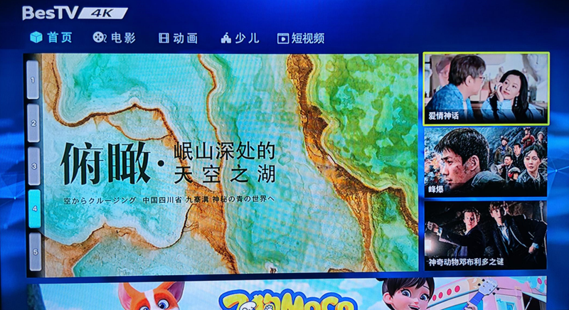 4K频道除了换个维度推荐电影、电视剧、少儿等内容,还设有短视频栏目。
