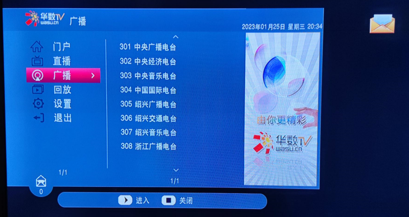 绍兴酒店里,互动电视只能观看直播的电视和广播频道。