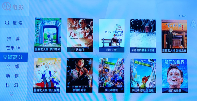 在电影、电视剧的推荐维度中,除了传统的按影片类型、地区划分,还加入了“豆瓣高分”类别,比如电影推荐的有《楚门的世界》《辛德勒的名单》《阿甘正传》《疯狂动物城》等,参考价值更高。