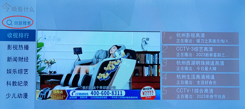 如果说江苏酒店里江苏电信IPTV的时移给用户体验加分,浙江酒店里华数互动电视的回看则是加分项,因为回看不仅仅是个功能,还给做成了一个很好玩的内容入口。