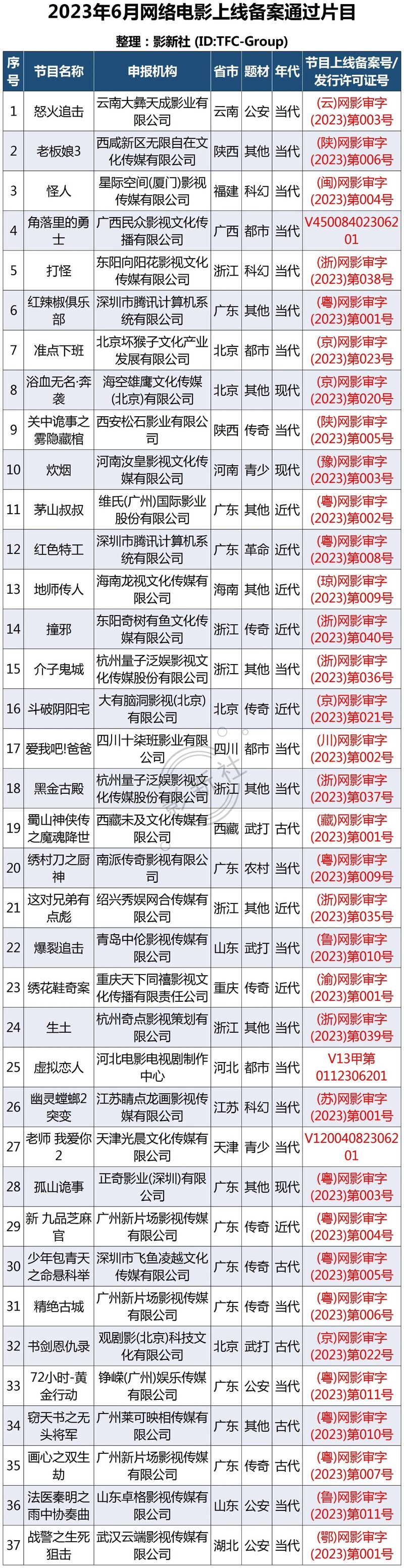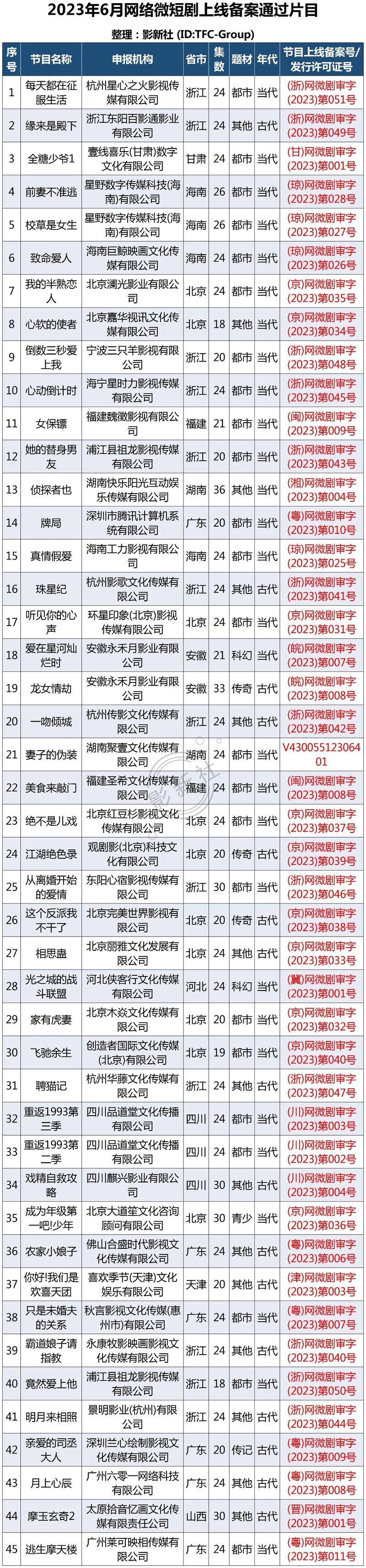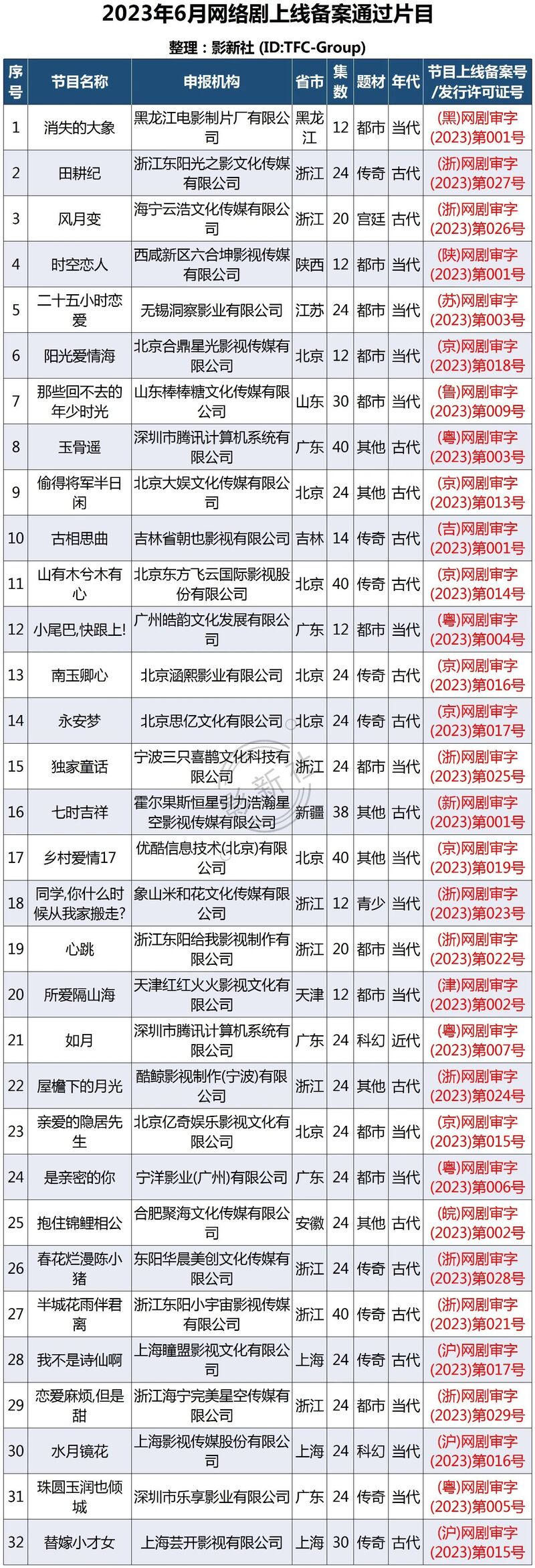6月网剧、网络电影、微短剧、网络动画片上线备案通过片目一览