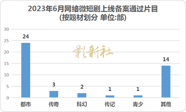 网络微短剧45部1074集,其中,都市题材24部,传奇题材3部,科幻题材2部,青少题材1部,传记题材1部,其他题材14部。