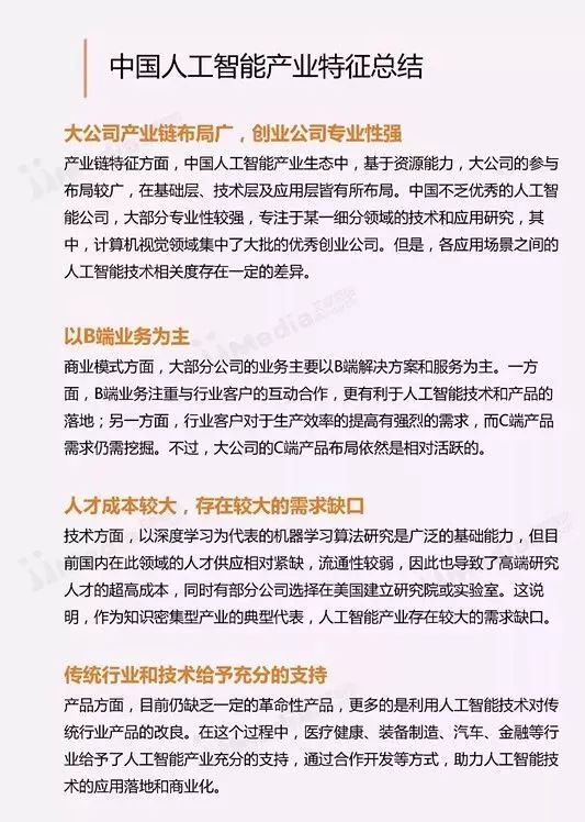 目前,中国的人工智能研究处于爆发期,行业巨头公司正逐渐完善自身在人工智能的产业链布局,而不断涌现出的创业公司将持续在垂直领域深耕深挖。