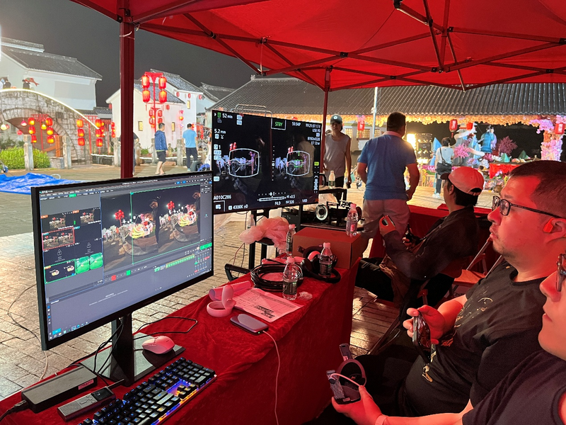“但往往也是因为这样的顾虑,我们以往看到过很多VR作品都会处理的非常保守,就会看起来枯燥无味”,4K花园副总裁兼前端技术总工程师于路介绍,“我们本着最大限度展现3D VR影像魅力,打破常规,寻找新的突破,包括使用了在VR拍摄中不多见、为实现大范围匀速运动的电影级伸缩摇臂,在展现画面张力的同时也尽可能降低观众对3D VR运动镜头的眩晕感;在夜景拍摄中首次尝试针对3D VR的抠像合成,由于3D影像的视差是绝对精确的空间位置,3D VR近景的双目视角差比传统3D影像要大得多,虚景和实景之间无论是高度、角度、距离等参数稍有偏差,都会带来巨大的挑战,过程中前后期都进行了大量的攻关克难;此外在结合3D VR特效方面,如何将绣球与演员、场景结合才能更加突显3D VR影像的视觉冲击,也是需要反复验证。特别感谢vivo团队的信任,我们希望竭尽所能,为佩戴这款创新型头显产品的用户带来不一般的精彩体验。”