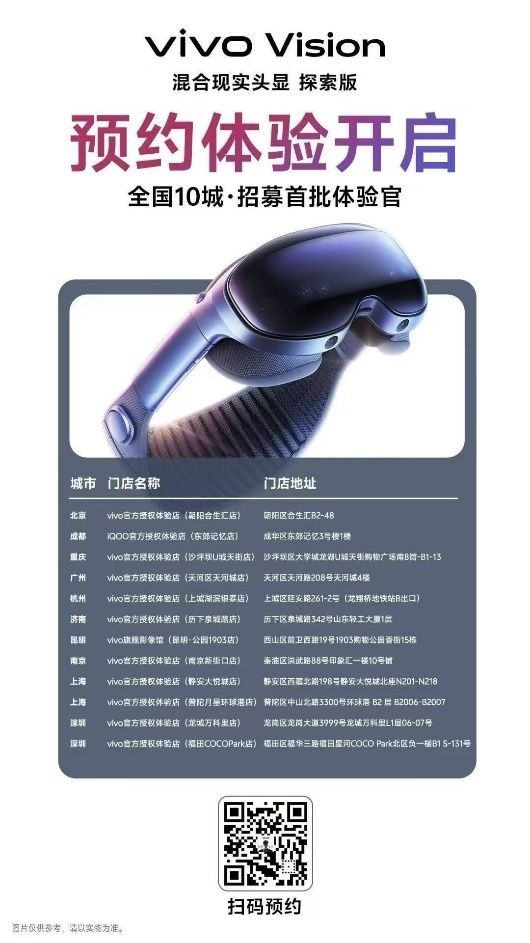 据悉,vivo已在北京、上海、广州、深圳等10余座城市设立官方授权体验店,近期还将开放第二批线下体验门店,用户可提前预约体验,跟随《六艺传韵》一起沉浸感受空间穿梭的自由!