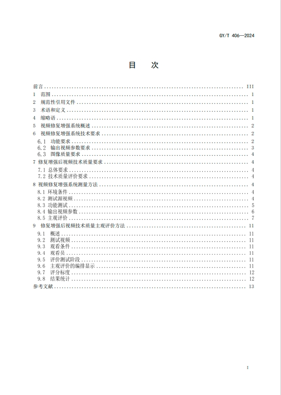 国家广播电视总局组织审查了《视频修复增强技术要求和评价方法》,现批准为中华人民共和国广播电视和网络视听推荐性行业标准,予以发布。标准编号为GY/T 406-2024。