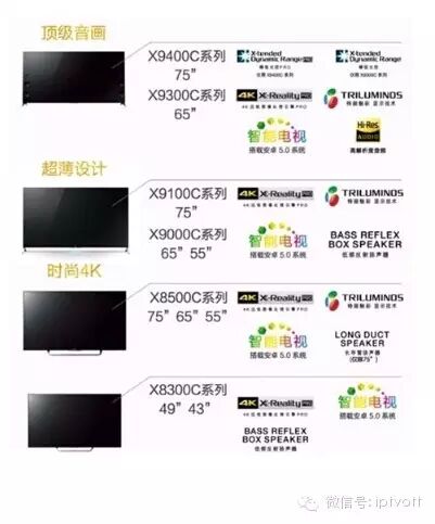 索尼2015年10款BRAVIA电视新品,尺寸横跨43寸到75寸,均搭载Android操作系统。其中,X9000C系列产品采用“Floating Style”悬浮设计,该设计能够使电视完美贴合墙面。X9400C/X9300C系列还搭载磁流体扬声器。此次推出的产品还包括X8300C系列、R500C系列、W850C系列等。