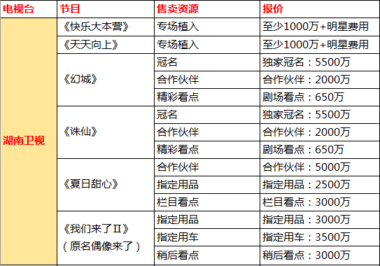 优质广告资源价格连年大幅上涨已经称为电视媒体界的常态,据业界知情人士透露,2016年度湖南卫视大部分优质广告资源涨幅已近100%,部分此前价值7万元的广告在2016年将涨至20万元。