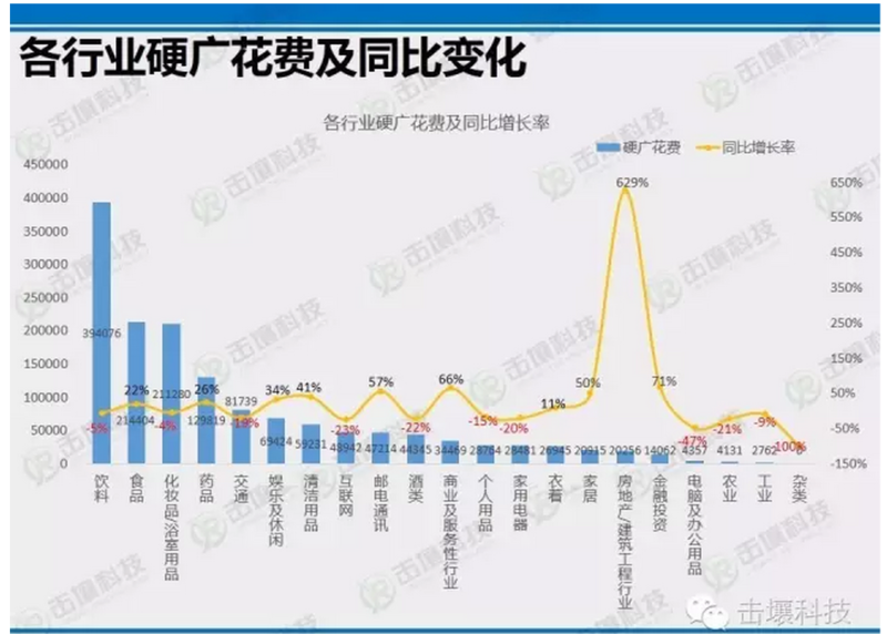 4、 硬广投放费用方面,碧桂园异军突起,证明了投放量较少的行业也有黑马存在。