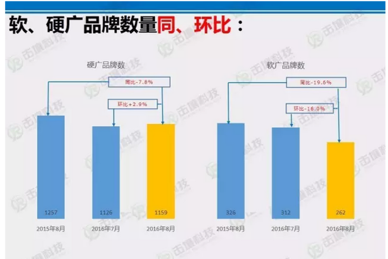 软广品牌数同比下跌19.6%,环比下跌16.0%,软广客户大量流失。