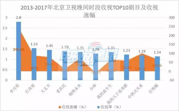 数据来源:鹰眼收视系统,CSM50城,晚间时段,20130101-20171031,收视率&收视涨幅,4+