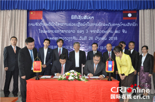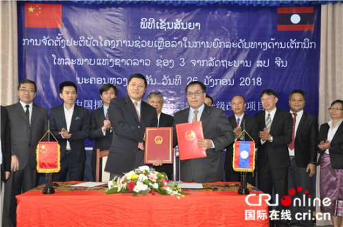 中国援老挝国家电视台三频道升级改造项目实施协议签约仪式26日在老挝国家电视台举行,中国驻老挝大使馆经济商务参赞王其辉、老挝国家电视台台长本昭·皮吉分别代表中老两国政府签署上述协议。老中合作委员会副主席垦通·西苏翁、中老两国有关部门代表等出席。