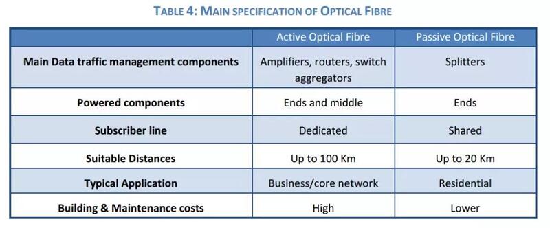 光纤在单根玻璃纤维中具有无与伦比的100Gbit/s数据通信速度,被认为最适用于骨干网(中继线及长线路),随着光纤成本的下降,无论是在CAPEX还是在OPEX,光纤都已逐步进入到接入网,发达城市中,光纤被越来越多地住宅的接入,无论是主动光纤还是被动光纤,其差别在于。