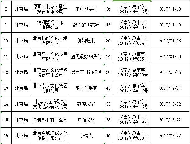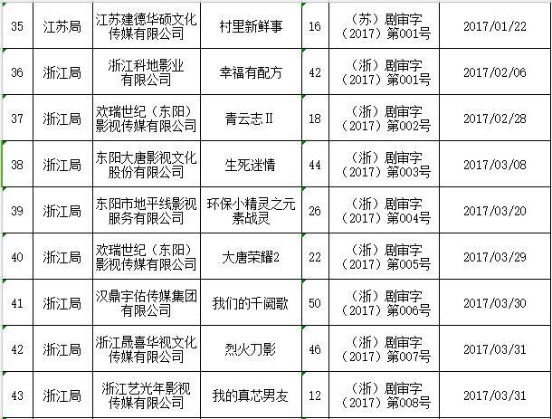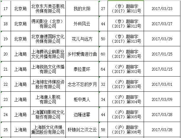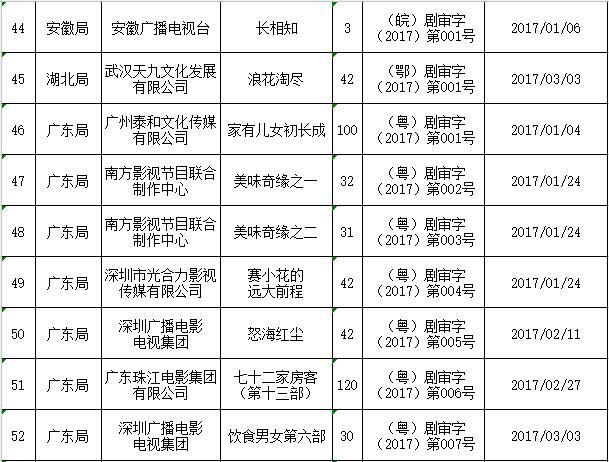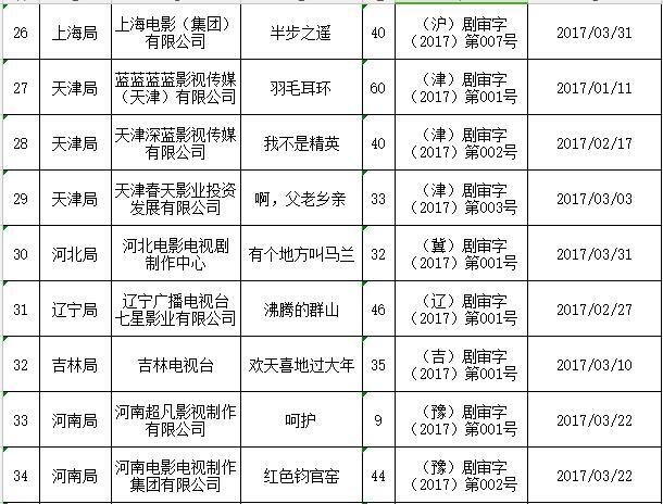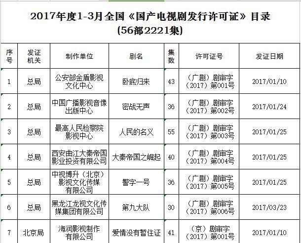 国家新闻出版广电总局关于2017年第一季度 全国国产电视剧发行许可情况的通告