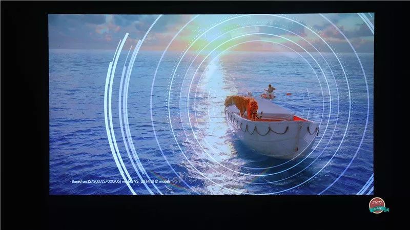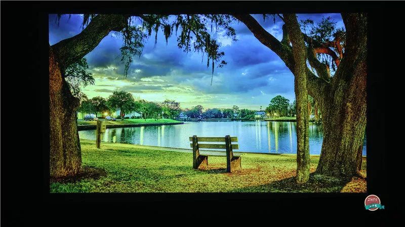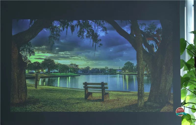 HDR图片:这里是白天与黑暗环境下的对比照,下午三四点钟的阳光光线很强烈,坚果J7投影仪白天的表现很不错,因为镜头拍摄会有一点色差,实际效果比照片还要好一些。全黑环境下,4K图片展示更加生动,颜色与明暗细节都有所保留,这得益于亮度的提升。照片属实,未做任何修饰。