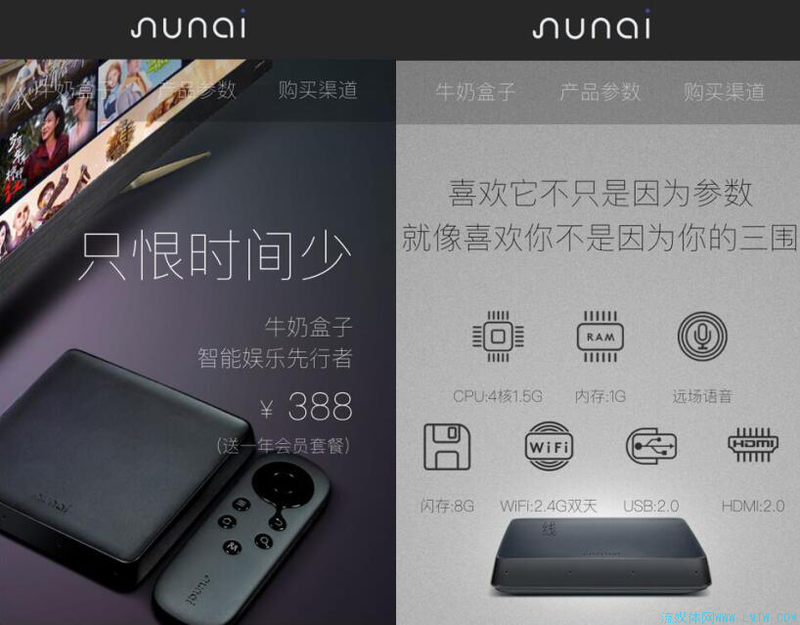 官方信息显示,牛奶盒子搭载4核1.5G CPU,1G内存,8G闪存,采用2.4G双天线WiFi,对于家庭中的日常使用已经足够。