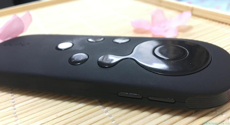 牛奶盒子的遥控器是一大亮点,相比盒子可以说惊艳了,黑色半透高分子材料实现良好触感及平衡特点,触感特别亲肤,让人莫名想起“丝般顺滑”这个形容词。官方的口号是“长在手上的遥控器”,外型小巧,采用类手机设计,将电源键和音量键放到了侧面。