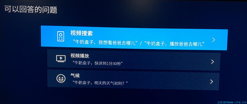 每次牛奶盒子被唤醒后响应搜索内容期间界面顶部会有一条很有科技感的动感蓝光,可惜照片难以呈现