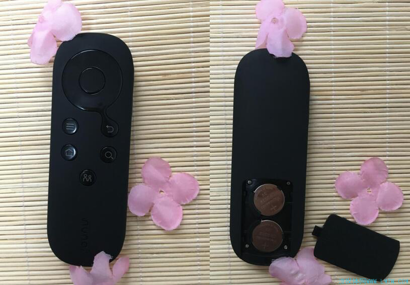 牛奶盒子的遥控器比当下比较主流的OTT盒子遥控器,类似小米、天猫魔盒那样的小巧、圆润,采用两颗纽扣电池。