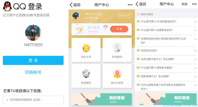 测试了一下微信和QQ扫码登录,很顺畅,会使用微信QQ头像作为头像,昵称则是在你的微信QQ昵称后随机生成几位数字和英文,可以绑定手机号。用户中心目前尚待完善,有敬请期待的项目,卡券和答疑已经完成,还可以直接呼叫400客服电话,整体体验良好。