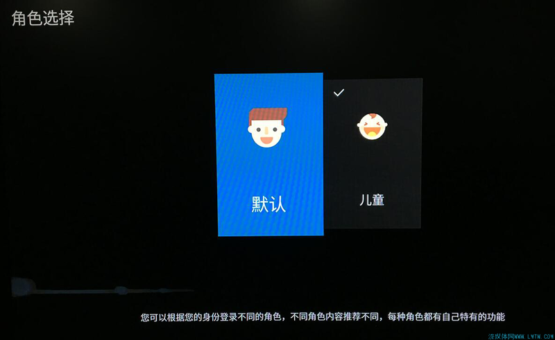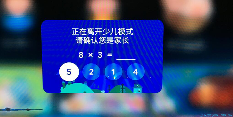 角色模式目前划分了两个角色:儿童和普通,除了可以在界面上切换,遥控器上有专门的快捷键。想退出儿童模式,需要做一个算数题。