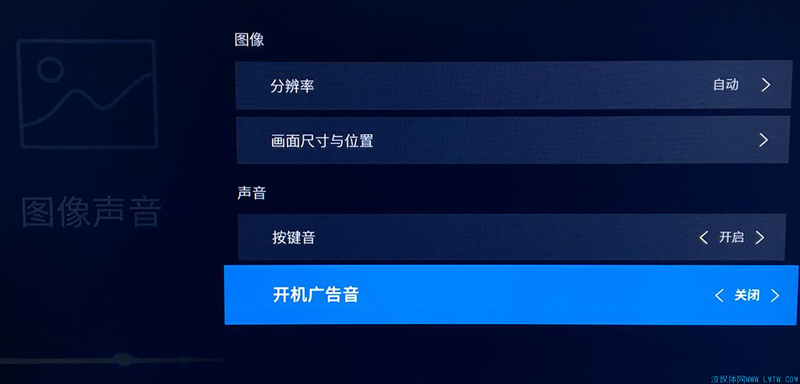 刚好用到了图像设置,最初盒子与所连接电视的画面匹配略有问题,导致四边显示不全,调整显示区域之后好了。发现可以设置开机广告音,但目前开和关没什么不同,也许因为目前没有开机广告?