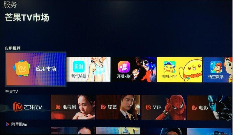 紧挨着海报的是最近观看记录,初次打开时,这里则是目前处于其下一列的视频APP,属于三个栏目里的“服务”。目前除了芒果TV,有银河奇异果、CIBN酷喵影视、云视听极光、CIBN聚精彩、CIBN聚体育和乐播投屏,汇集了银河、CIBN、南方新媒体等牌照商背后的爱优腾几大家族,都已经提前预置,无需下载安装直接观看。根据使用轨迹,最近使用的自动靠前。