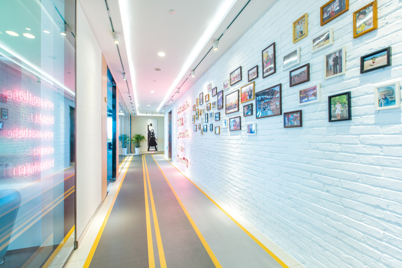40楼的走廊里打着暖光,地面上别出心裁的画出“跑道”,让人走在上面不禁想动起来、跑起来,这非常契合新媒体公司一直倡导的“三实三快”企业文化。林非是IPTV新媒体领域为数不多的女老总,公司办公装修的创新设计是她亲自操刀设计的,这富有创意和深意的办公环境背后,蕴含着林非独特的风格品位和对公司、对团队发展的深深期许。