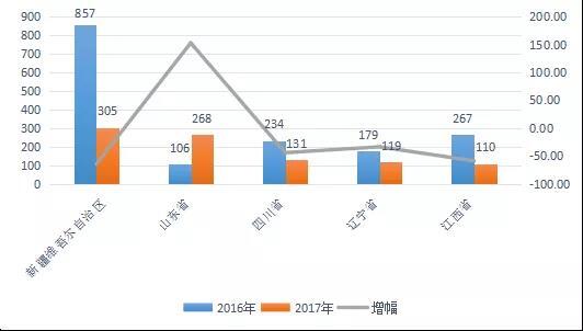 图10 2017年电视剧进口部数排名前5的省(自治区、直辖市)