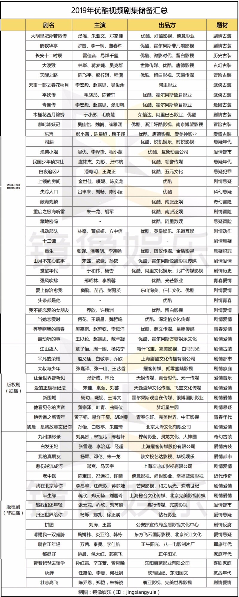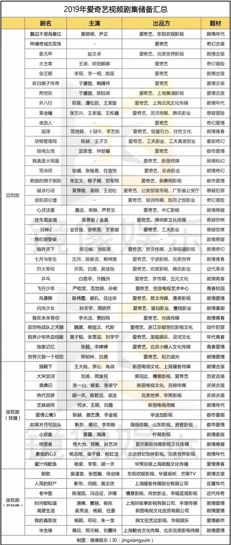 【流媒体网】摘要:本文整理汇总了2019年“优爱腾”的待播剧集,在2018年视频网站自制剧首次超越版权剧之后,2019年视频网站的自制剧占比已经达到了65%。