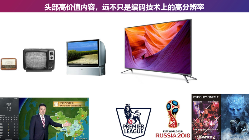 接下来,我这里面说一下如何打造高价值产业,其实对于真4K产业来说,不应该只是简简单单一个分辨率的提升,不是你加上4K分辨率和HDR你这个内容就会受欢迎、消费者就会愿意买单,还要你的内容是否是头部内容、有头部IP,比如好莱坞电影、体育赛事,例如英超。