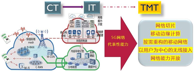 对于广电传媒行业,笔者想要强调的是,5G网络代表性能力体现“网络业务融合”的理念,这与大视频大传媒产业“内容+渠道”的发展趋势是一致的!这正是CT走向IT(信息化)再进一步走向TMT(信息媒体融合)的大趋势!