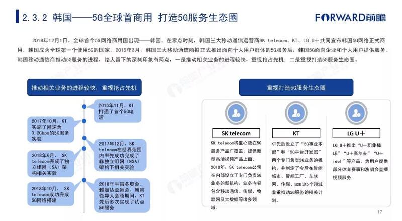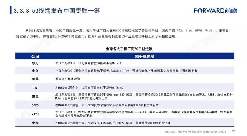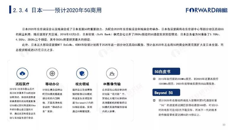 近日,前瞻产业研究院发布了《2019年中国5G产业发展现状及趋势分析报告》,介绍了5G产业链、5G产业典型企业、5G产业十大应用场景、全球5G产业发展趋势,重点分析了中国5G产业发展趋势。