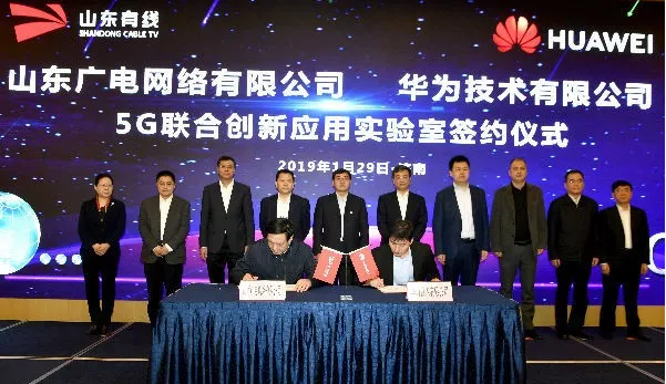 2019年1月29日上午,山东广电网络有限公司和华为技术有限公司“5G联合创新应用实验室”揭牌仪式在济南举行,代表着双方将发挥各自优势,重点在5G规划与建设部署研究、5G行业业务孵化和示范推广、广电5G新媒体研究、全媒体云平台等方面开展研究。这标志着山东广电网络有限公司在5G项目上,迈出了实质性的步伐,将成为推动山东全媒体融合的新引擎和新动能。