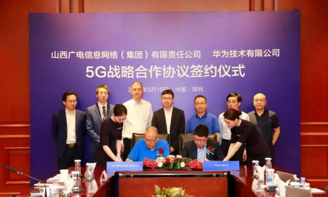 2019年5月15日,山西广电信息网络(集团)有限责任公司与华为技术有限公司在深圳华为总部签署战略合作协议。双方就广电面向5G的网络建设进行了深入的交流和探讨。双方将调集各自的资源在5G、700M基础网络建设、集客业务、智慧城市、融合媒体、4K超高清、人工智能以及企业文化和人才交流培养等领域,进行深入战略对接与务实合作,全面推进“智慧广电”创新、实践和应用。