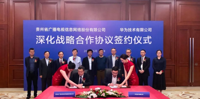 5月19日,贵州广电网络与华为技术有限公司在深圳签订深化战略合作协议,双方将携手在5G、华为云、融合视频云、智慧家庭及智能终端等领域开展深度合作,共同推进“智慧广电”新变革。
