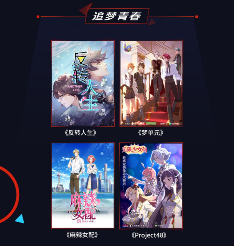四是推出“国漫BANG计划”,借助动画VR、虚拟角色开发等,打造腾讯视频国漫英雄宇宙。据悉,该计划将通过系列的开发运营,线上内容资源等应援、线下漫展演唱会等,形成国漫角色的IP产业链闭环。在对优质IP及原创内容开发的同时,对现有行业国漫资源做乘法,激发新势能。