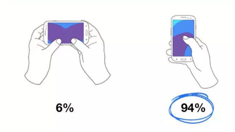让我们来看一些数据:智能手机用户在他们94%的时间里都选择垂直手持他们的手机;竖屏视频的完成率比横屏视频高出90%;仅有不到30%的用户会将他们的手机横过来观看广告。