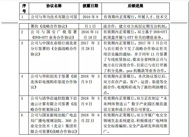另外,湖北广电网络对最近三年框架协议后续进展情况进行了披露: