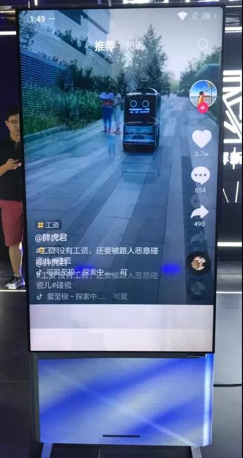 一种是当手机屏幕向下放置时,手机正在播放的短视频内容将自动在智屏上显示,再拿起手机时,则自动回到手机播放界面。智屏根据正在播放的内容来自己判定用横屏或者竖屏显示,笔者在体验的时候手机正在播放抖音短视频内容,智屏则自动从横屏调整至竖屏。