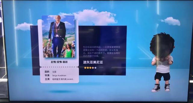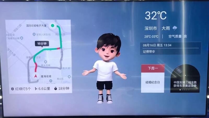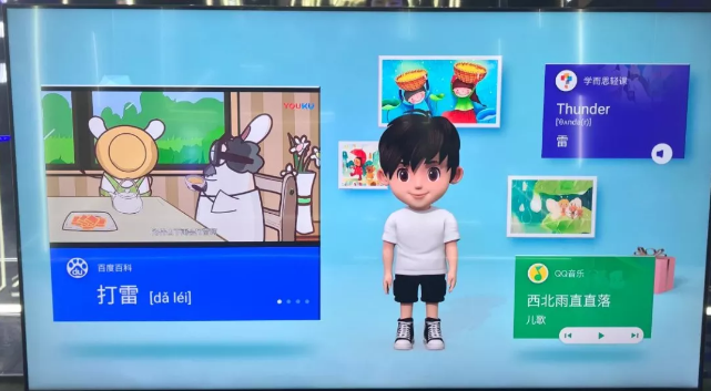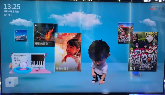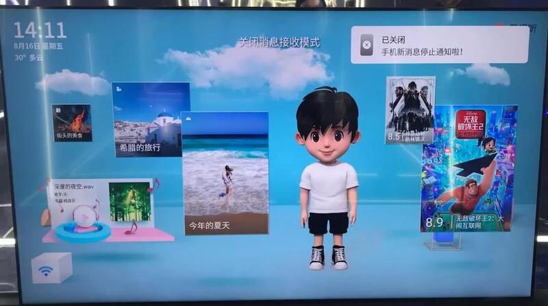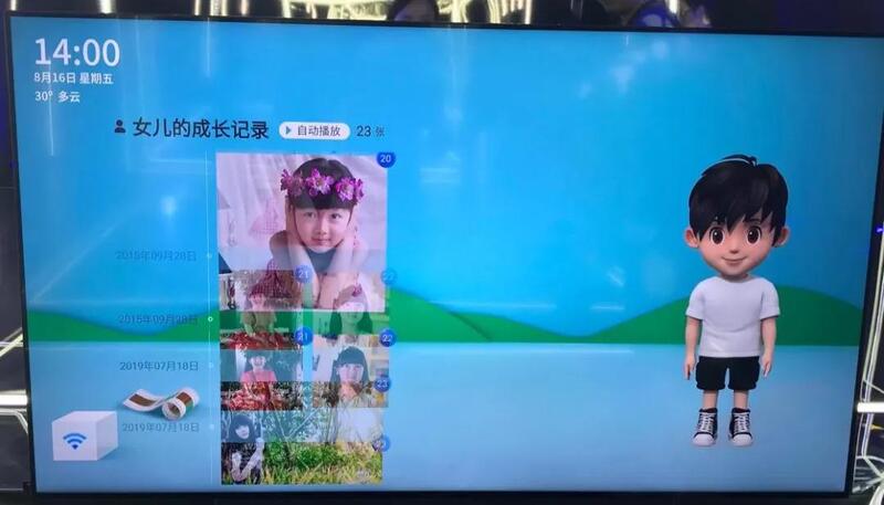 页面上只展示最重要的信息,就推荐内容而言,目前主要分成三大块:相册、音乐和影视。查到内容的方式主要靠“说”,而不是手动检索。中间的小男孩叫“小T”,用户主要通过跟他沟通对话的方式获取内容。