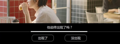 广告中会制造结局的悬念,观众可以选择不同的结局。这就要求剧本上需要有双向结局或 者有反转剧情。例如,在某快餐品牌 2019 夏季广告中,主角在餐厅中一边吃东西一边期待“偶 遇”暗恋的男生。这种可以反转的剧情,让观众可以决定剧情走向(采用分支剧情互动能力)。