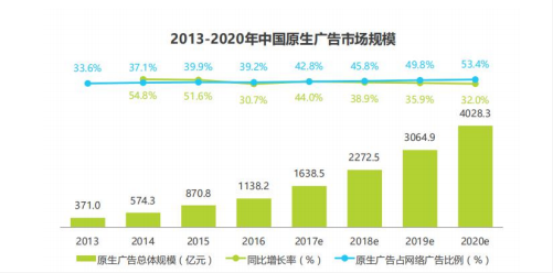 1.1 行业背景:原生广告成为一种趋势,是近几年视频广告行业创新的重点领域。原生广告可分为形式原 生和内容原生两种。其中形式原生是指广告与载体形式保持一致,如:搜索信息流、搜索关键 词等。内容原生即广告与载体在内容上保持一致或具有相关性,如:创意中插,原创内容植入 等。据艾瑞咨询数据显示,预计到 2020 年,中国原生广告将占据中国网路广告的半壁江山, 比例达 53.4%。