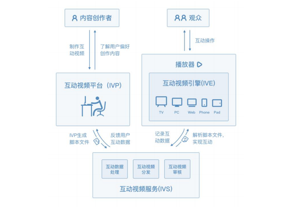 互动视频平台(Interactive Video Platform,IVP)通过增加互动功能、拼接完整剧情, 最终投放到内容视频或者内容网站上,帮助广告主便捷高效地打造出高品质的互动视频广告。