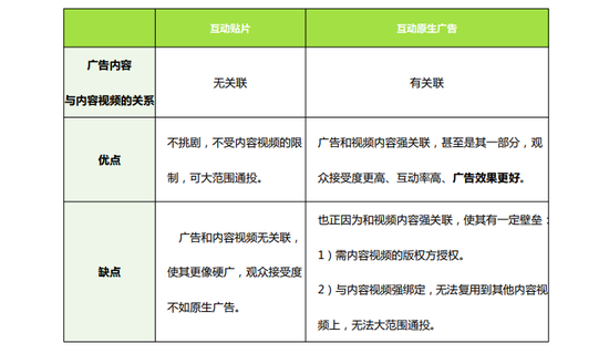 在展现时机上,两者均可以和内容视频有关(以前贴、中插、后贴形式展现)或者无关(在 信息流、开屏、焦点图等位置,独立呈现)。