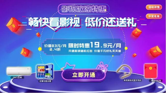 7月23日—8月5日,湖北IPTV推出影视冰凉特惠活动!原价83元/月的影视少儿特权包2.4折优惠,现价19.9元/月,只要用户开通了影视包、少儿包、或者影视少儿包、院线大片、潮爆热剧、爆笑综艺、甜萌动画、随便看!